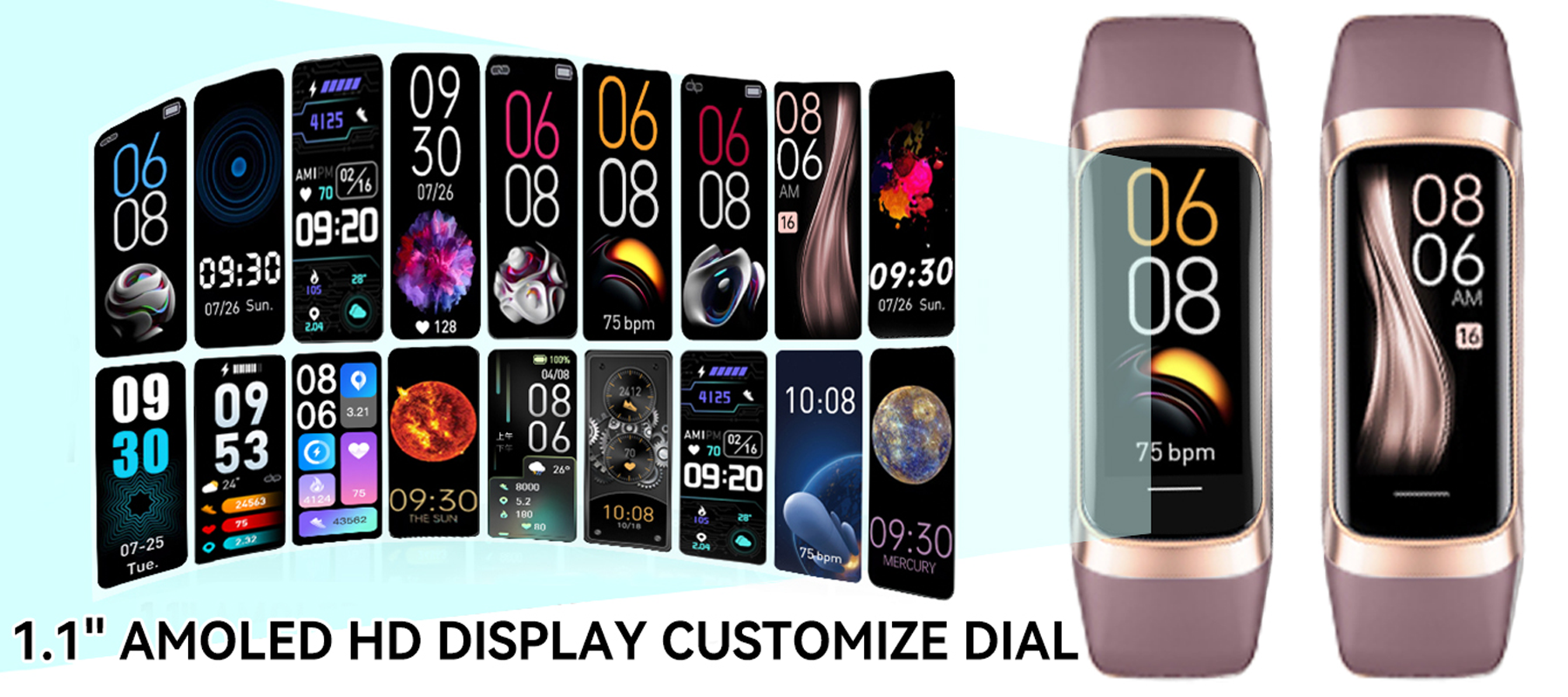 1.10" AMOLED HD touchscreen with customizable faces