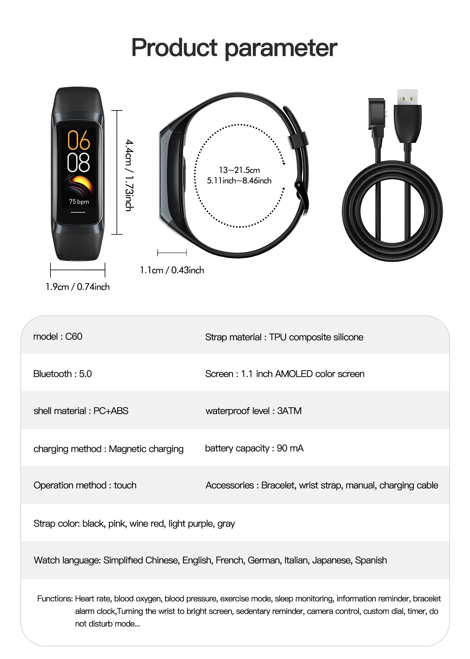 • AMOLED Color Display — 1.1-inch HD screen shows your data clearly and stylishly.